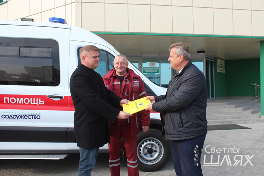 «Мы не остались безучастными и в тяжёлые времена начала пандемии COVID-19: поставили в Сморгонскую ЦРБ необходимые средства индивидуальной защиты и специальное оборудование, - заметил Павел Викторович. - В 2021 году предприятие приобрело для Сморгонской ЦРБ автомобиль скорой помощи. Подобных машин в автопарке Сморгонской ЦРБ ещё не было. Автомобиль предназначен для проведения лечебных мероприятий скорой медицинской помощи силами реанимационной или специализированной бригады, а также для удобной и комфортабельной транспортировки больных».