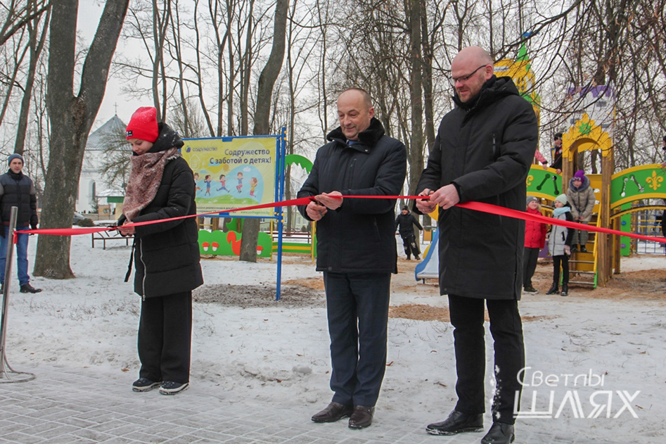 - В последние дни уходящего года люди ждут исполнения желаний и новогодних чудес. Сегодня группа компаний «Содружество» исполнила желание многих сморгонцев, подарив горожанам современную детскую игровую площадку. Когда было открытие воркаут площадки, молодые мамы говорили о том, что было бы неплохо сделать и детскую площадку, - прокомментировал Геннадий Хоружик. – Выражаем огромную благодарность предприятию «Белагротерминал» за оказанную спонсорскую помощь. На протяжении долгих лет это предприятие вносит большой вклад в развитие нашего района. В прошлом году «Белагротерминал» подарил современный школьный автобус, в этом году – новый автомобиль скорой помощи. Будем и дальше вместе сотрудничать на благо нашего города.