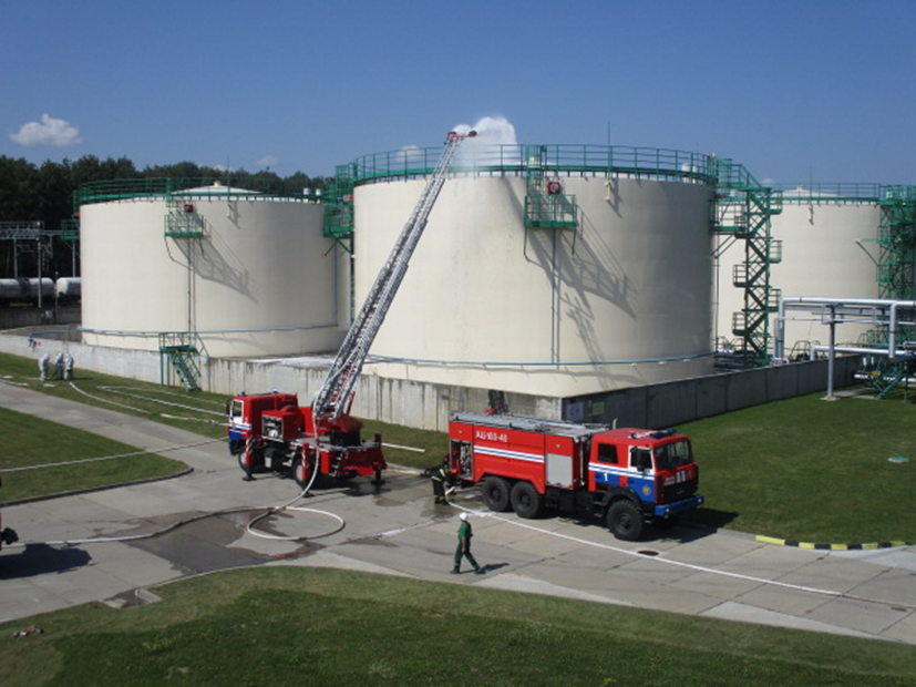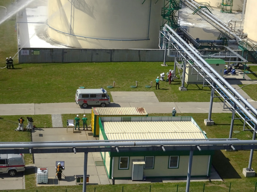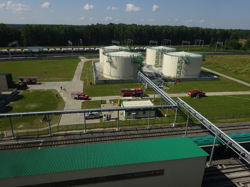 По тактическому замыслу учений на территории ООО «Белагротерминал» в ходе производственных работ произошел пожар в одном из резервуаров с хранящимся растительным маслом, есть пострадавшие. Для ликвидации возгорания были вызваны аварийно-спасательные подразделения Сморгонского РОЧС. Оператором пульта управления наливных грузов были остановлены все маршруты движения масла и перекрыты задвижки на технологических трубопроводах.