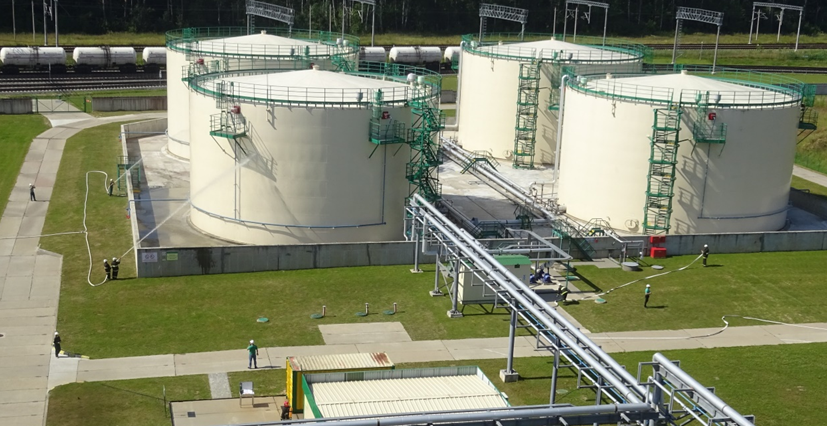 До прибытия пожарных расчётов силами работников терминала сыпучих и наливных грузов совместно с пожарной дружиной предприятия от пожарных гидрантов были проложены магистральные линии с подачей трёх пожарных стволов на защиту для охлаждения стенок «горящего» резервуара с целью недопущения его деформации и возможного разрушения от высоких температур.